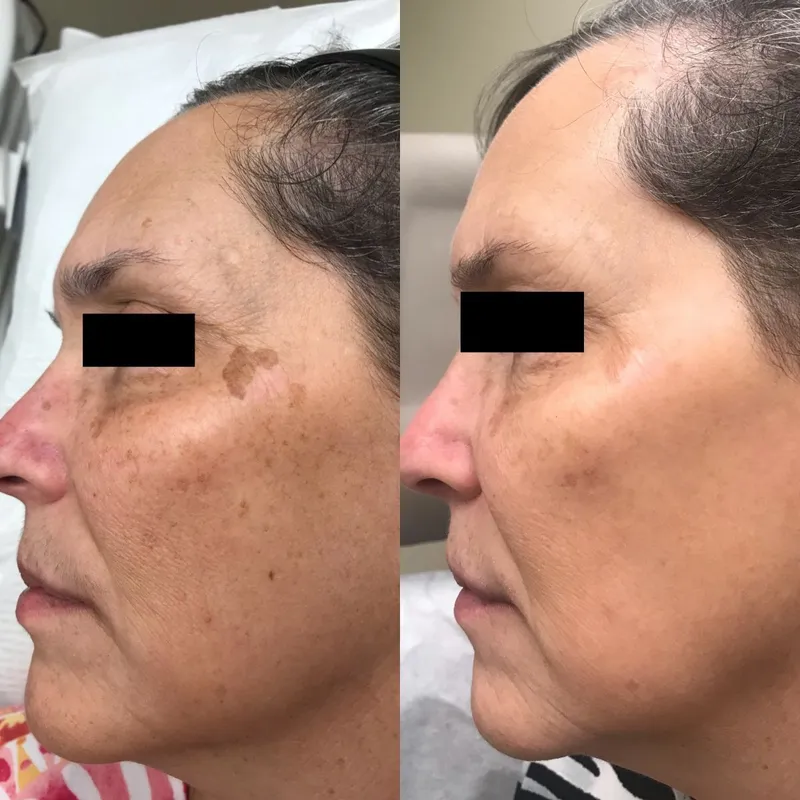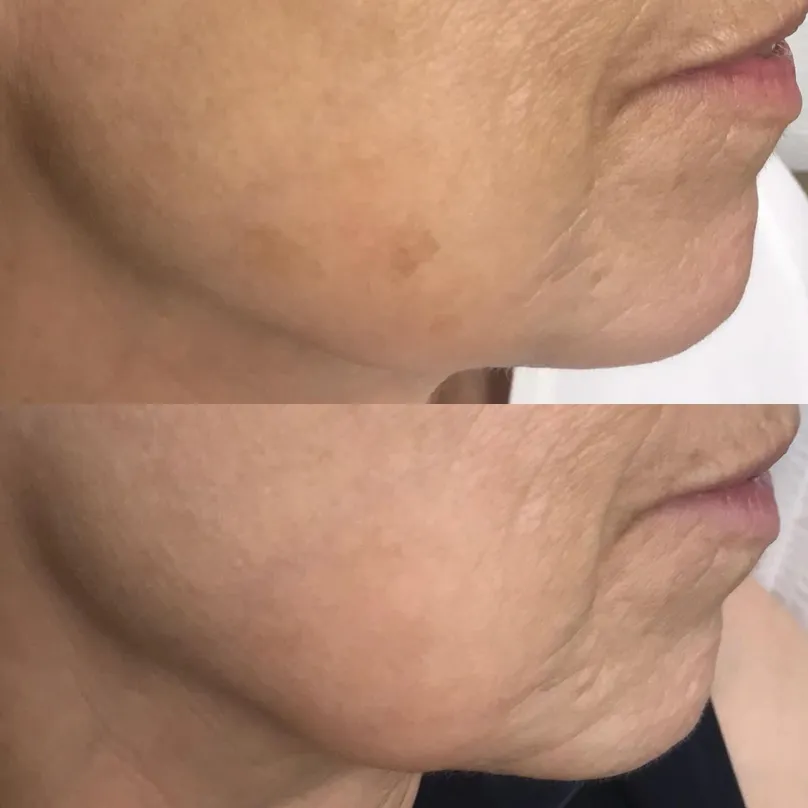 Female patient before and after 2 IPL treatments.