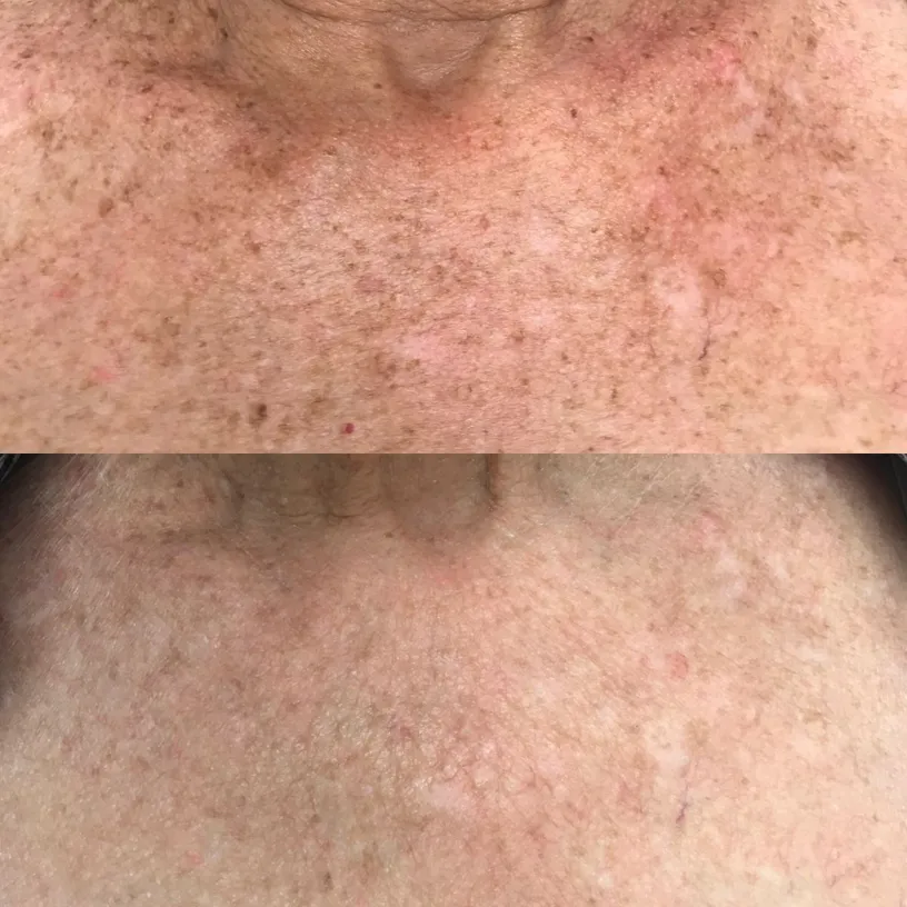 Before and after 3 IPL treatments on the chest.